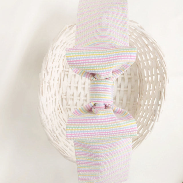 The Bow Next Door has taken their classic bow and turned it into the perfect Basket Bow! Whether adoring an Easter basket or gift basket. The bow simply Velcros around your existing basket (or purchase ours), ready for you to add Easter goodies, holiday presents, or baby shower gifts.