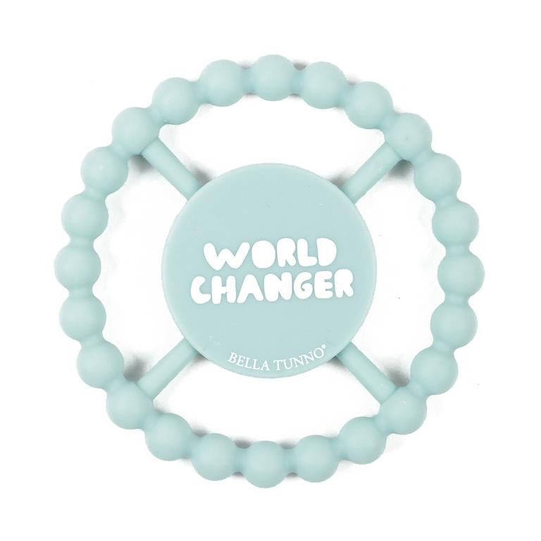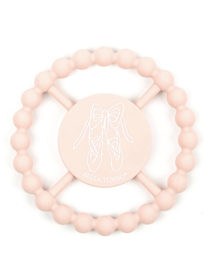 The rounded shape of the Happy Teether provides easy grip from any angle. The silicone material and beaded design give the right amount of resistance to sore gums and newly developed teeth.