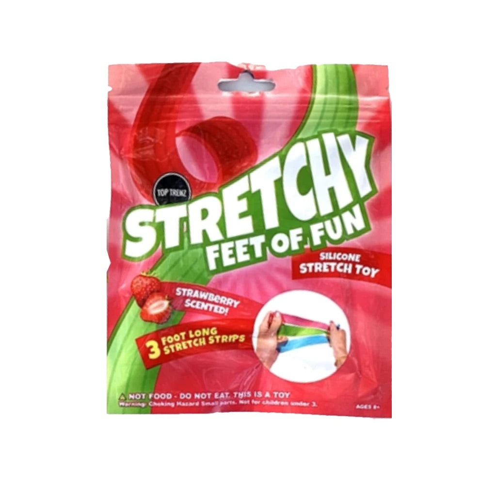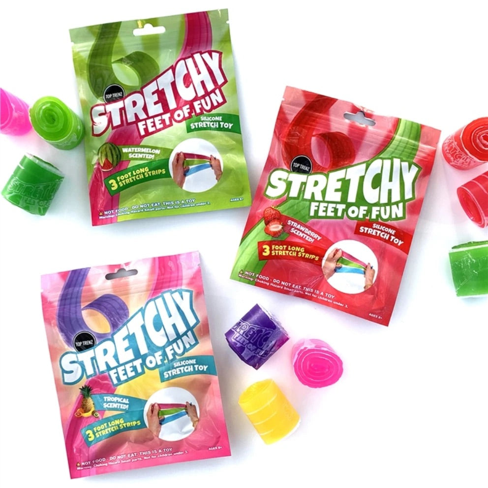 The fun scented silicone stretch toy that you can stretch, pull, knot, roll and squeeze. Includes 3 scented foot-long silicone stretch strips.THIS IS A TOY! DO NOT EAT!