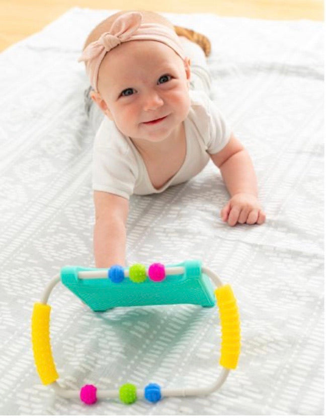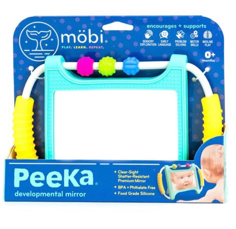 Peeka was inspired by our two little ones - Kate, who loves holding a mirror while we change her diaper and Noah, who as a preemie required as much developmental play and support as possible. When we started developing Peeka, we knew we wanted to make it as dynamic and multidimensional as possible - a toy that keeps a baby's attention and is packed with developmental attributes. We teamed up with doctors and therapists to get Peeka just right!