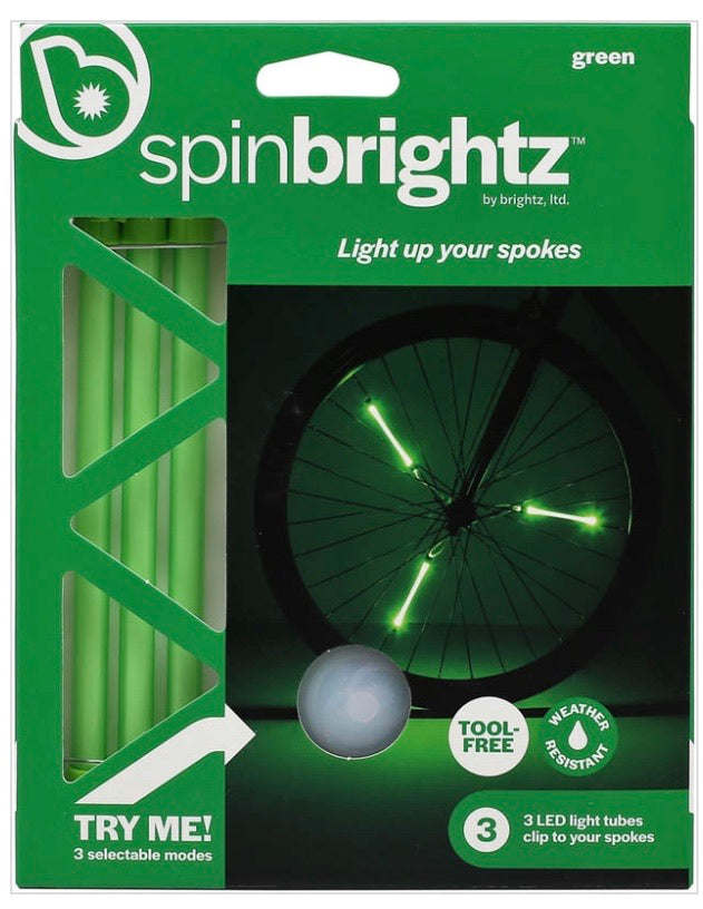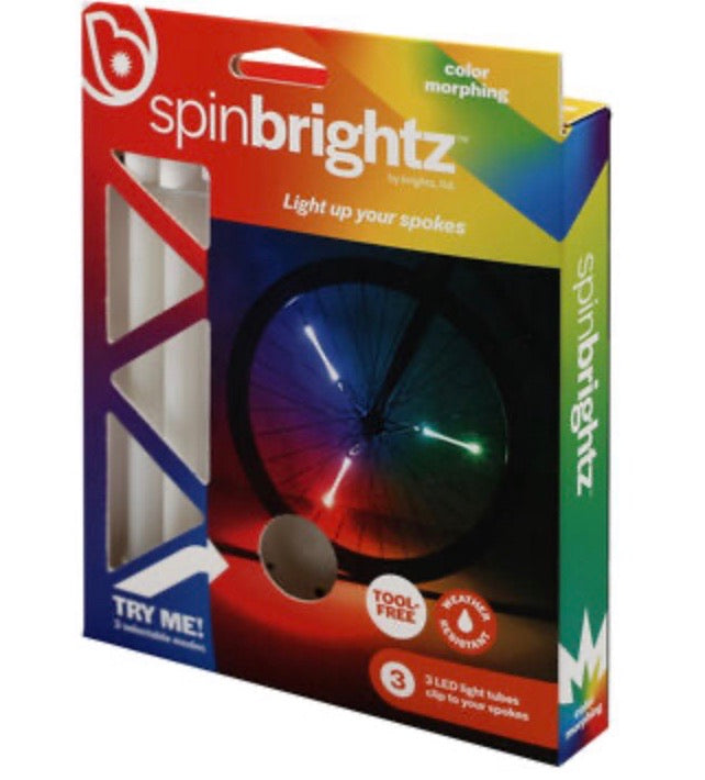 Light up your spokes with Spin Brightz! These LED tubes illuminate your bicycle wheel by creating a ring of color as you ride. Easy clip-on installation means you're ready to roll in seconds. Once installed, just select one of the 3 flashing options and you're good to go!