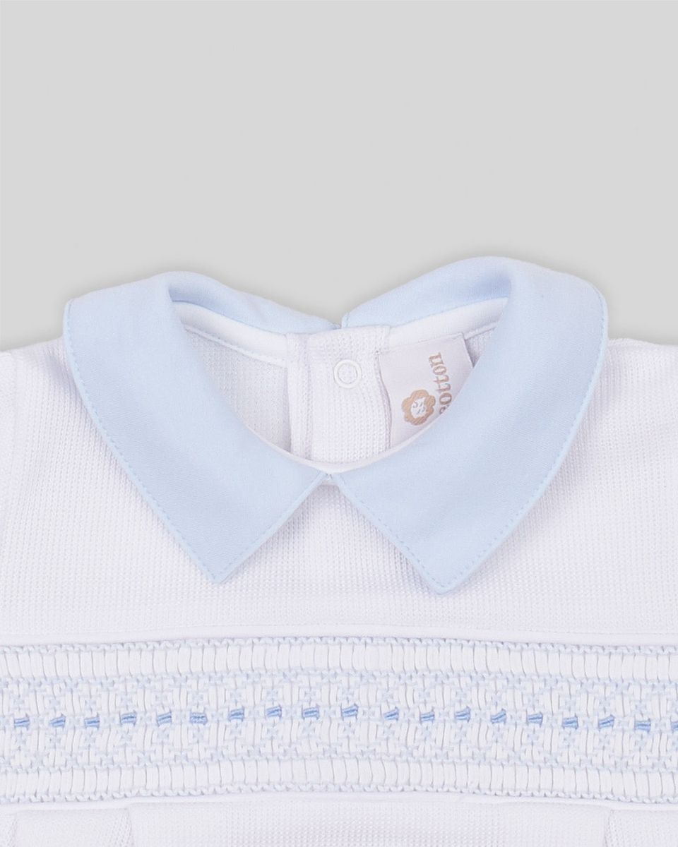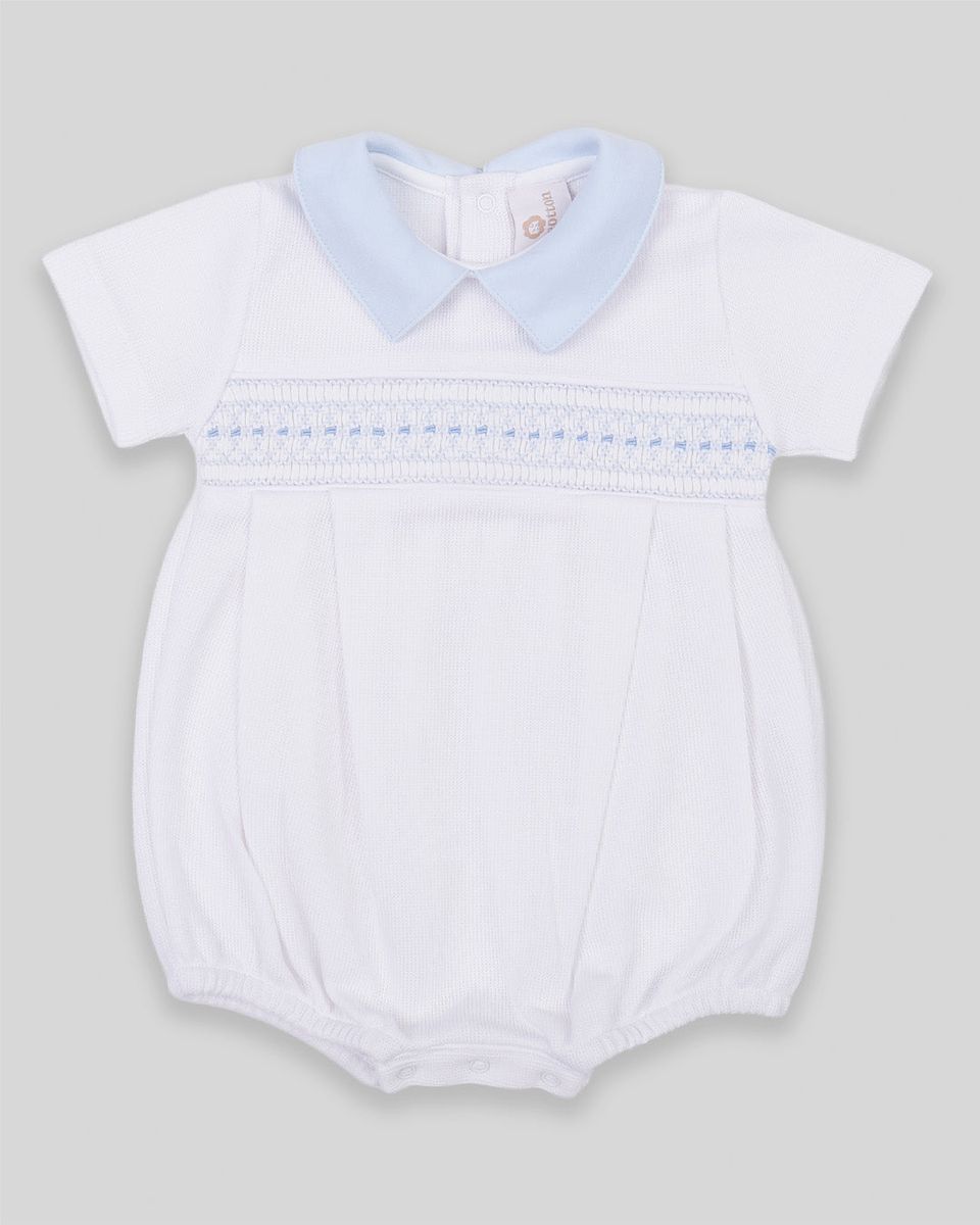Hand smocked bubble for baby boy in Pima cotton