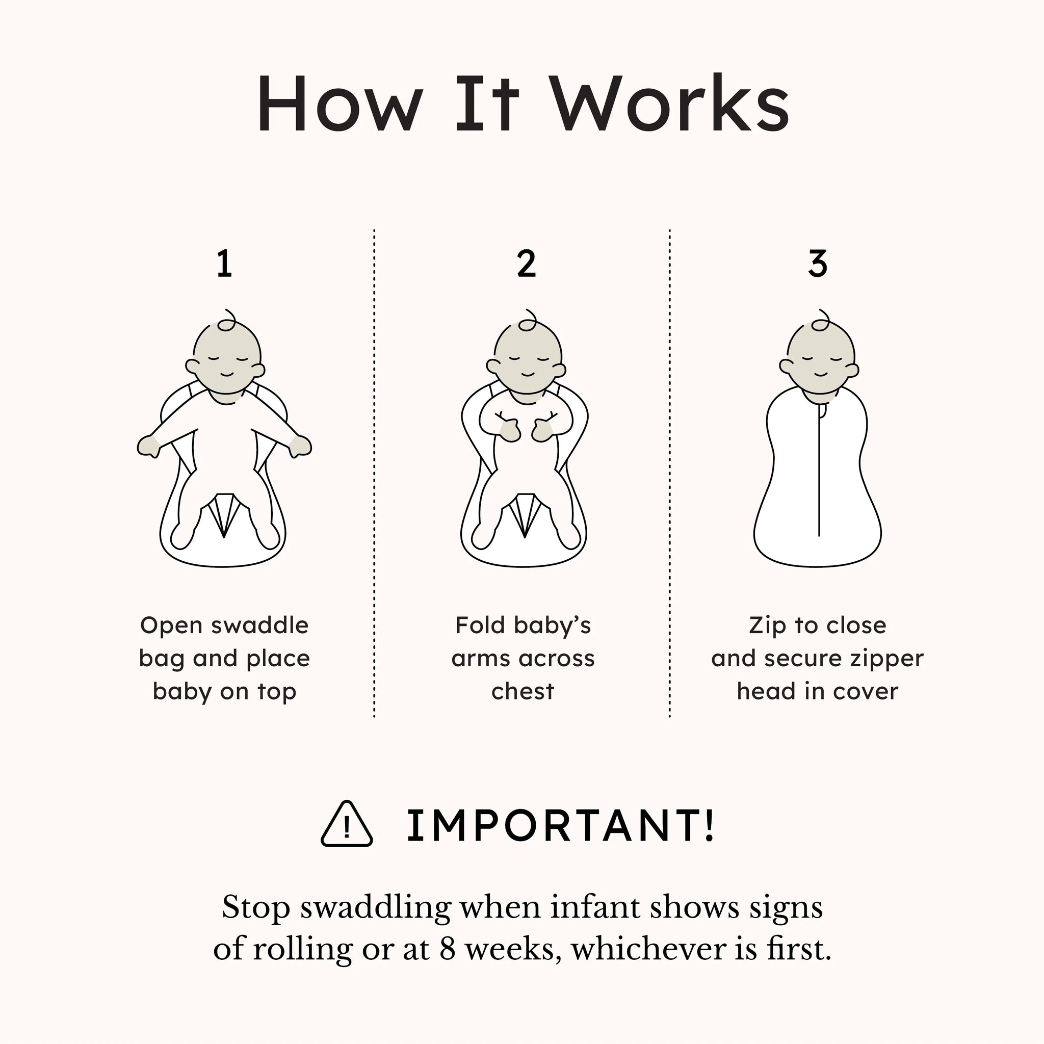 This fuss-free swaddle keeps your baby snug and safe as they adjust from womb to world. Crafted from an ultra soft, breathable bamboo fabric with built-in stretch, the swaddle bag is designed to let your little one’s arms rest in a natural, preferred position. No wrapping, tucking, or tricks required—simply open the swaddle bag, place your baby on top with their arms folded across the chest, and zip to close. The lightweight, thermoregulating fabric feels like a gentle hug for comfort and safety, while the hip-friendly design ensures proper development.