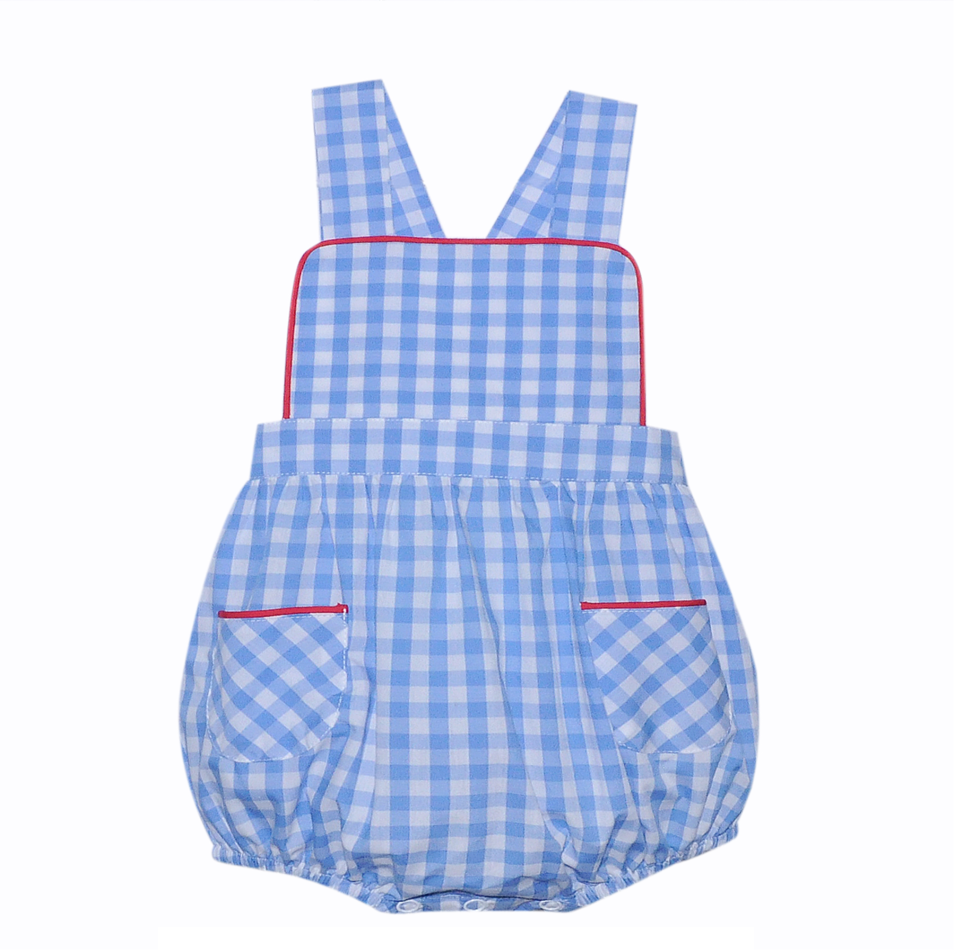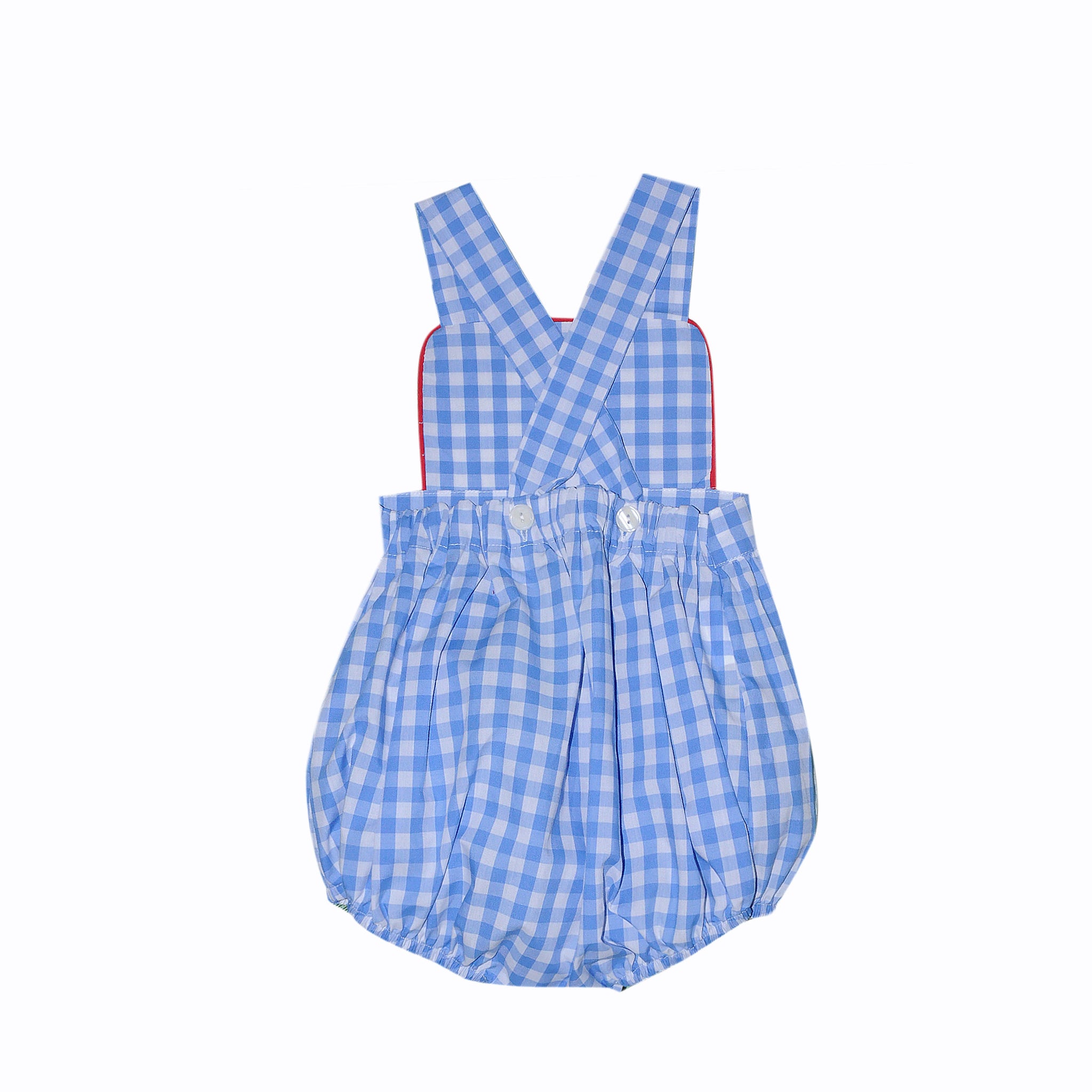 Blue check with red trim