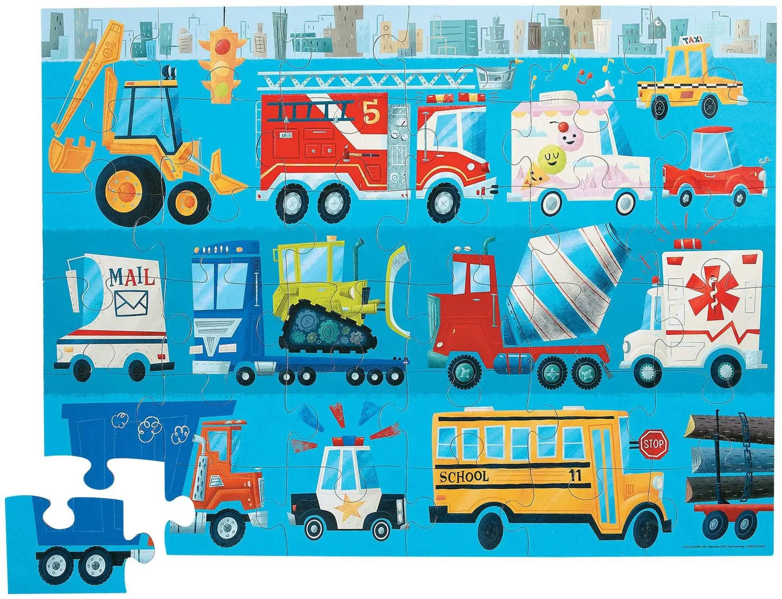 36-piece Puzzle. Something special, high -quality floor puzzle in wonderful, heavy-duty, contour-shaped gift box. A slightly-recessed lid makes the storage box easy for little fingers to open. Rugged, jumbo pieces. Conforms to or exceeds both U.S. and European safety standards. Puzzle is 20"W x 27"L. Box is 9"W x 11"H x 3"D.