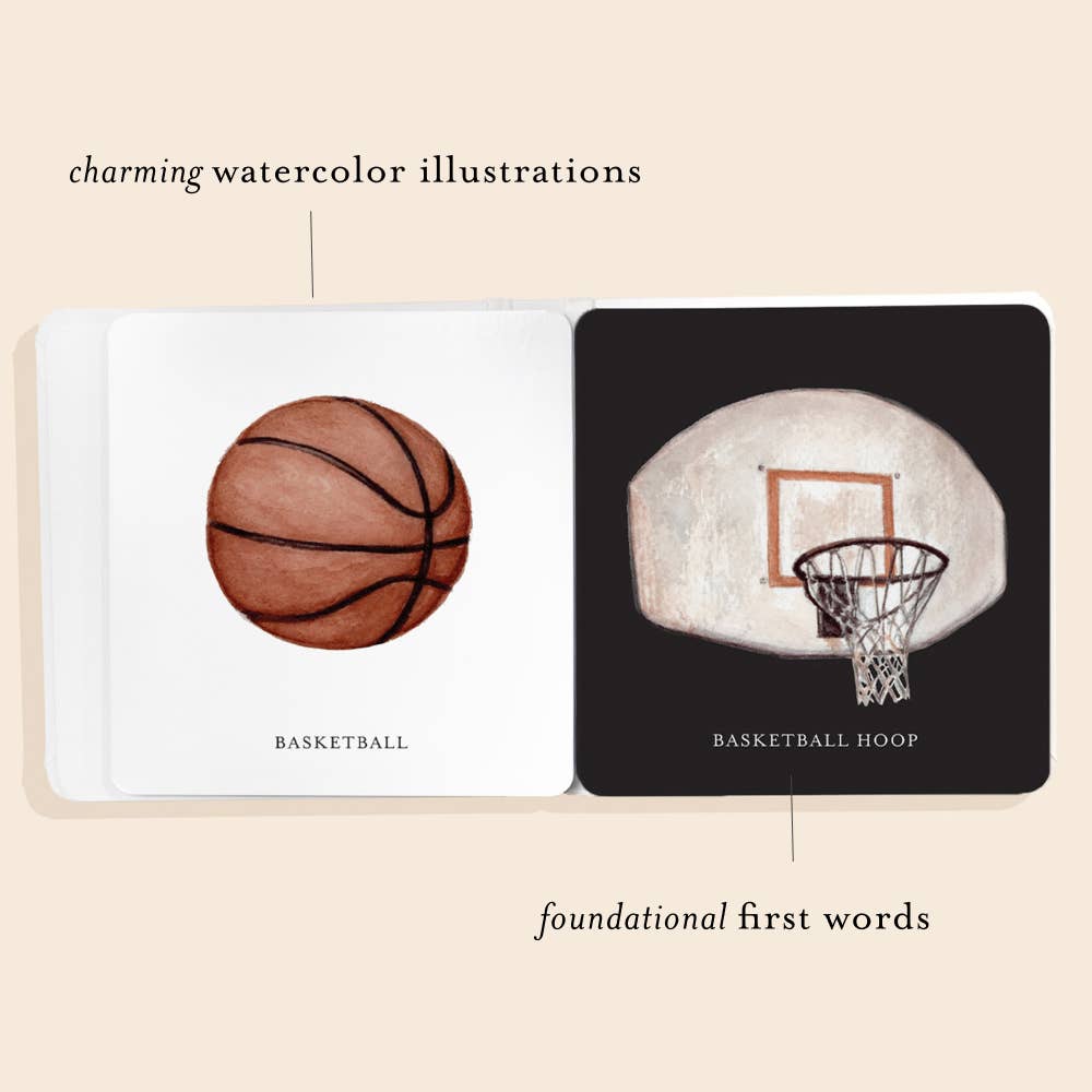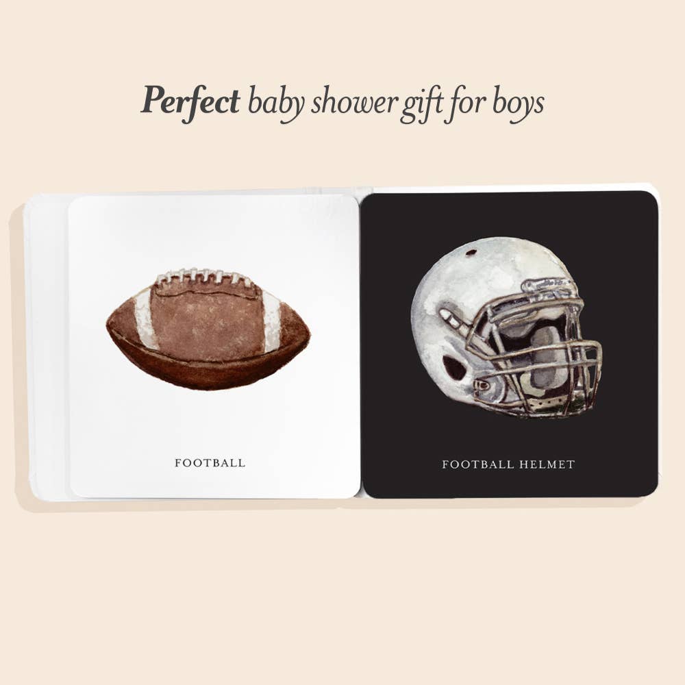 Infants are born with limited vision and respond best to bold images, which makes this high-contrast board book an ideal first book for developing eyes. Featuring fine art illustrations of classic sports gear—like soccer balls, baseball gloves, footballs, and more—this book introduces babies to the exciting world of sports from day one.