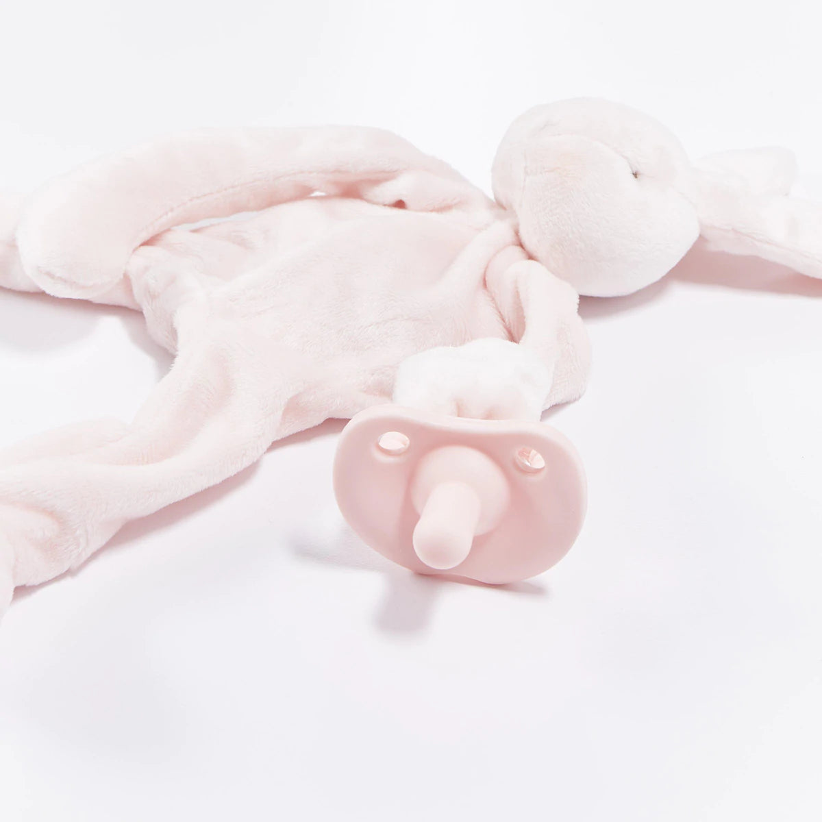 The perfect gift for your wee one with multiple ways to soothe. Super-soft and floppy, super silly, and oh so useful, this take -a-long pal will tie onto baby's stroller, crib or car seat. With pacifier holder hand loop and fun rattling head, this is sure to be a favorite security item of Baby and Mom and Dad alike!  Signature three carrot tag for little one's fingers.