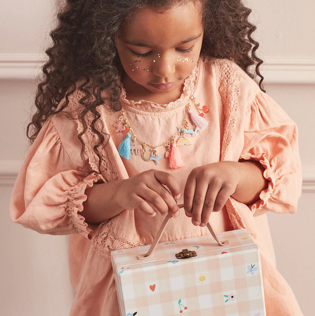 This beautiful advent calendar is cleverly designed as a mini pink gingham suitcase, filled with numbered trays containing enamel charms, tassels, and a chain and cord necklace to attach them to. It's the perfect gift for a special someone who adores accessories, and they can use the case to store all their favorite jewels in afterwards too!