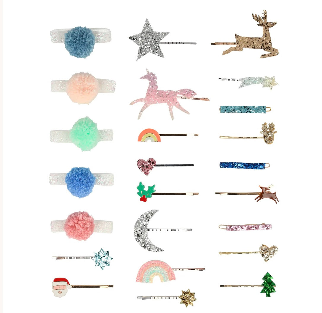 Children who love hair accessories will be over the moon with this amazing advent calendar suitcase. It's filled with the prettiest and sparkliest hair ties and slides. Open the case to reveal the numbered trays, inside which is a daily dose of hair happiness. The pink suitcase, with delightful designs and gold foil detail, is perfect to store the accessories in.