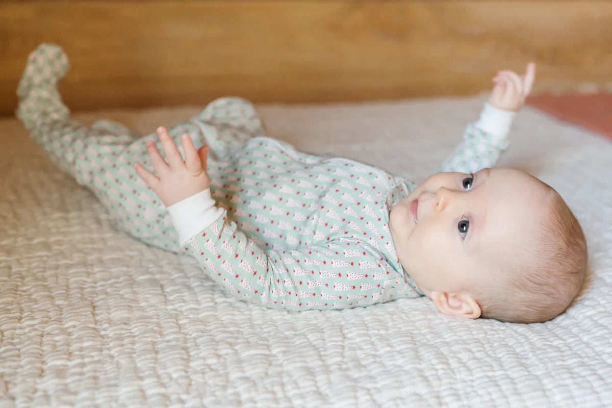 Sizes 0-3m, 3-6m, 6-9m and 9-12m have feet