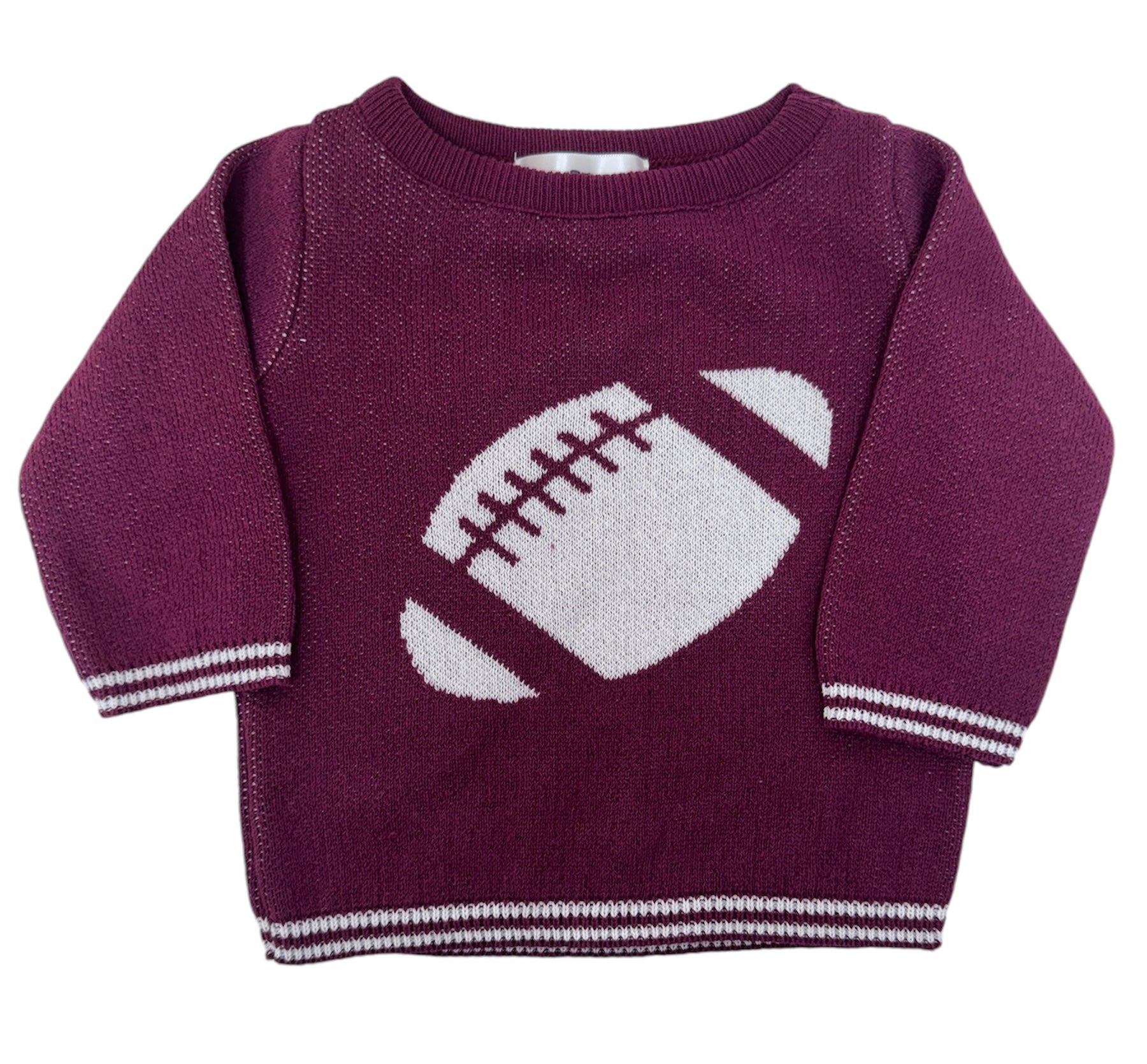 Crewneck Sweater Baby -Burgundy w/ Football in White