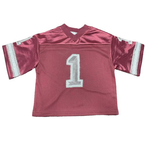 Add sparkle and excitement to your look with this Maroon and Silver Sequin Jersey. The rich maroon sequins paired with shimmering silver create a playful and dazzling style perfect for parties or everyday fun. Comfortable and eye-catching, this jersey lets you shine with bold, festive energy wherever you go.