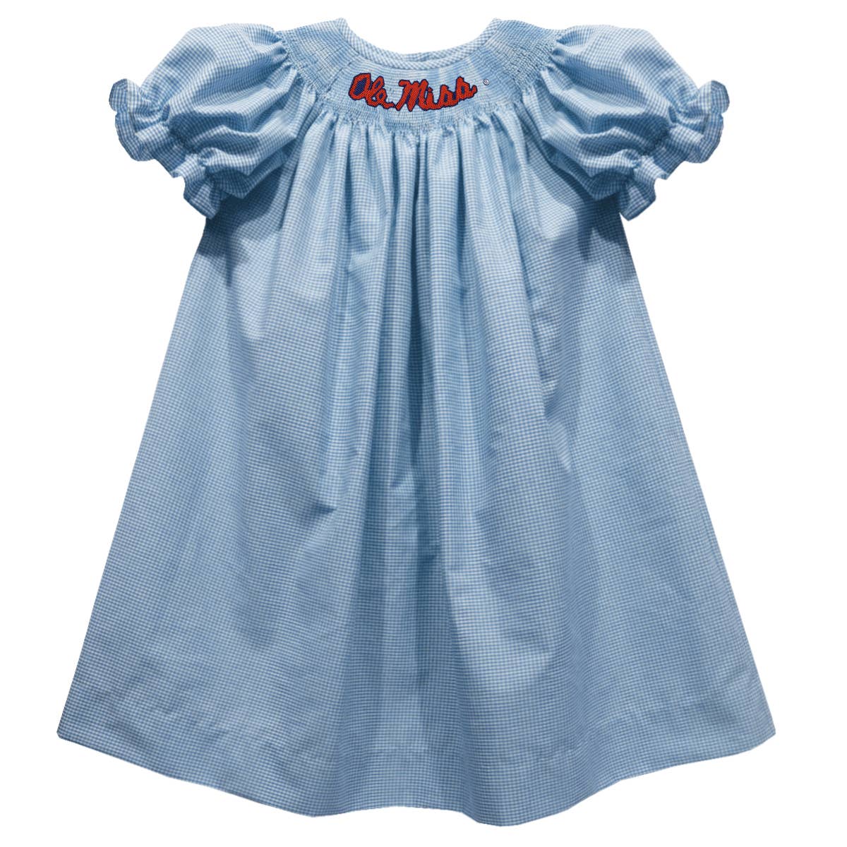 Ole Miss Rebels Smocked Light Blue Short Sleeve Bishop, 55% COTTON 45% POLYESTER, Machine wash