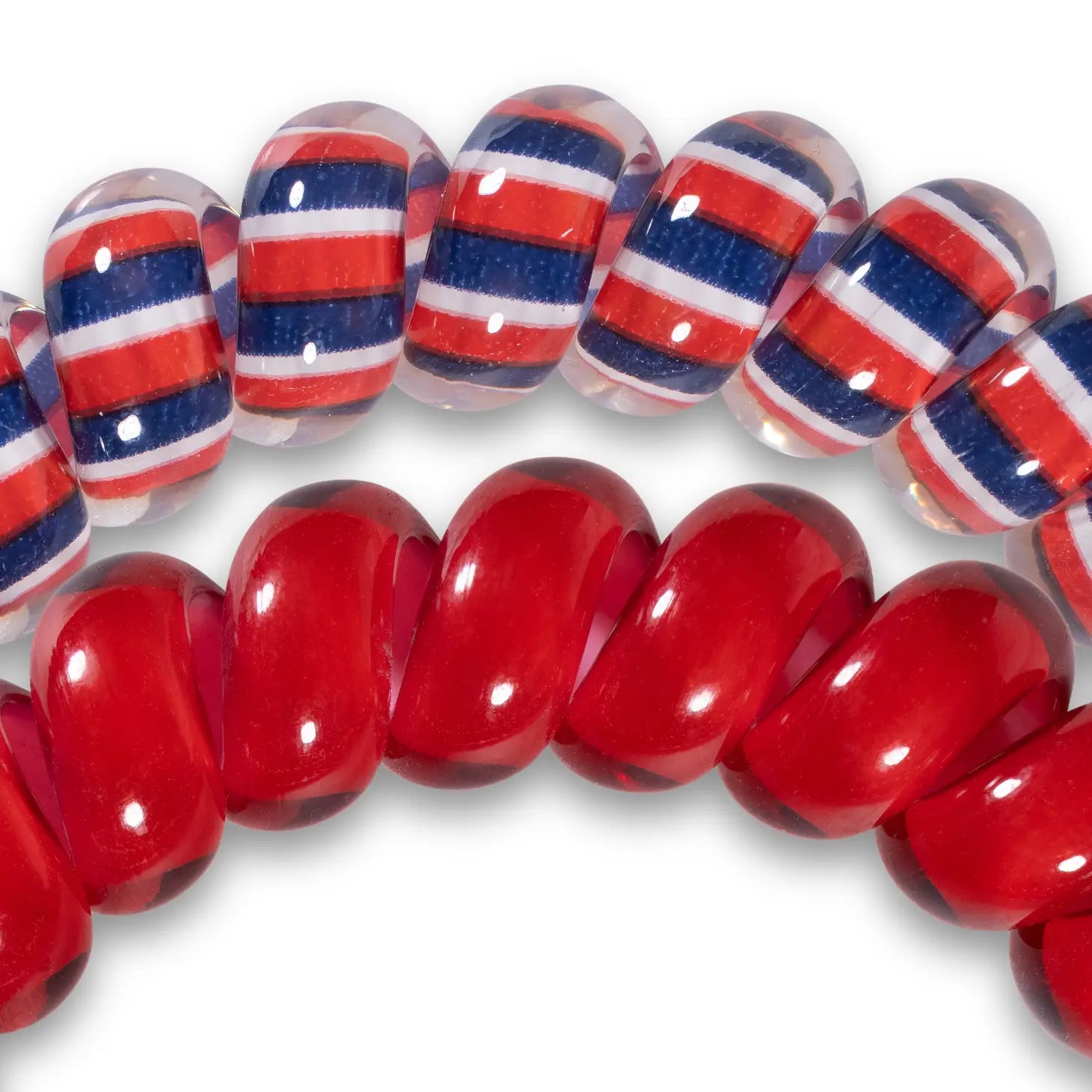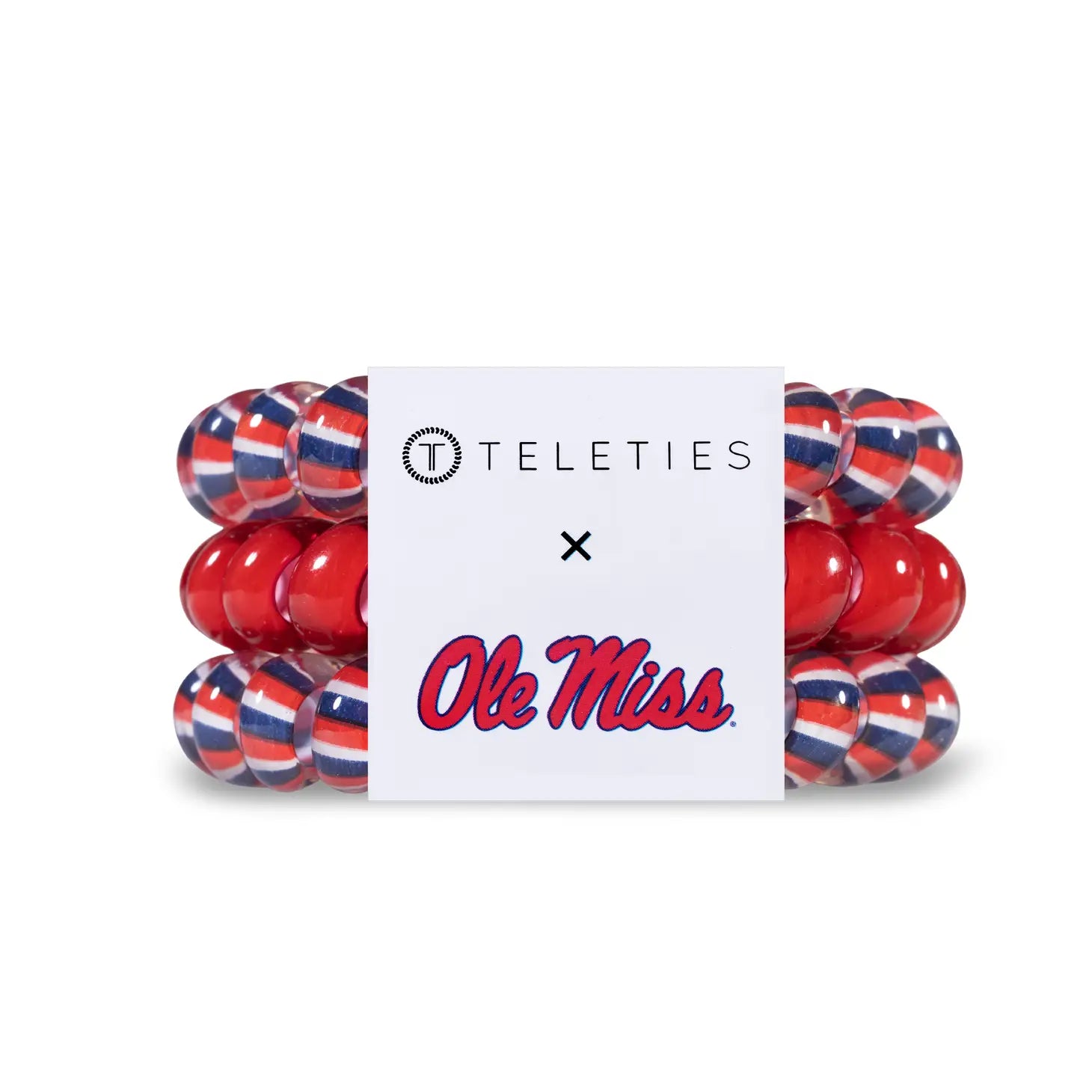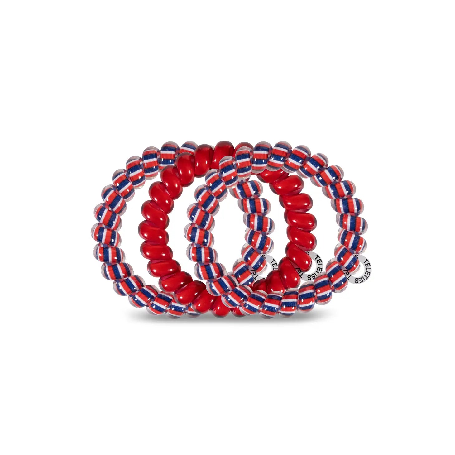 Hold your hair and enhance your style with TELETIES. The strong grip, no rip hair tie that doubles as a bracelet. Strong, pretty and stylish, teleties are designed to withstand everyday demands while taking your look to the next level. Sold in packs of three. The large size is 6.5cm wide x 1cm thick.