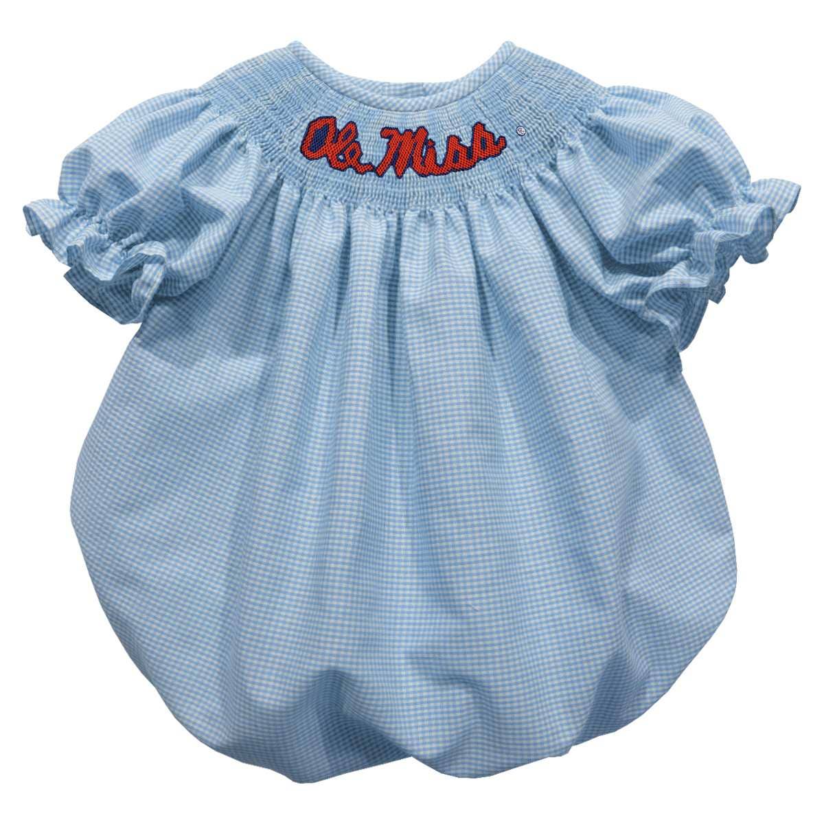 Ole Miss Rebels Smocked Light Blue Short Sleeve Girls Bubble