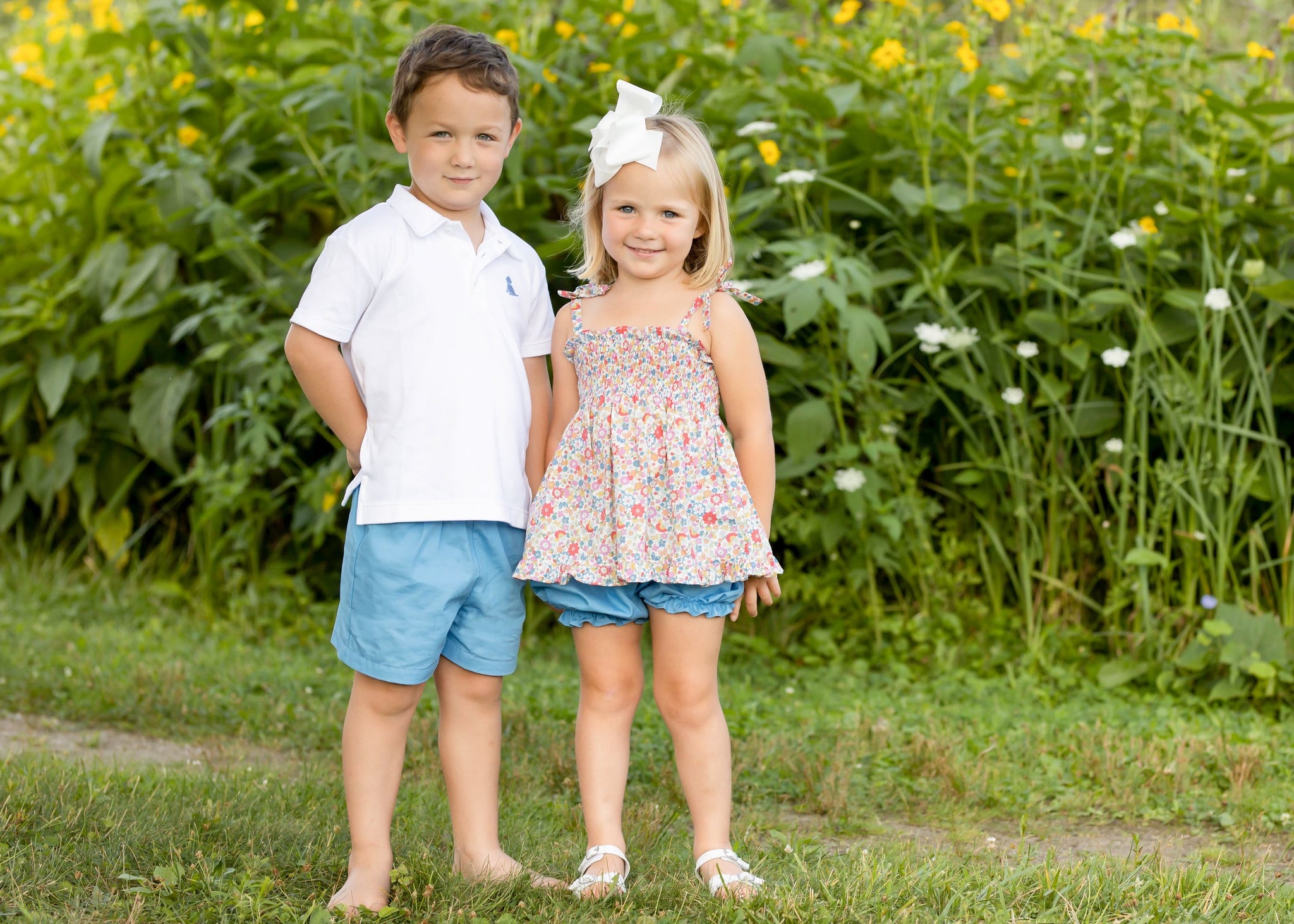solid blue shorts. Coordinates with the Libby smocked collection.
