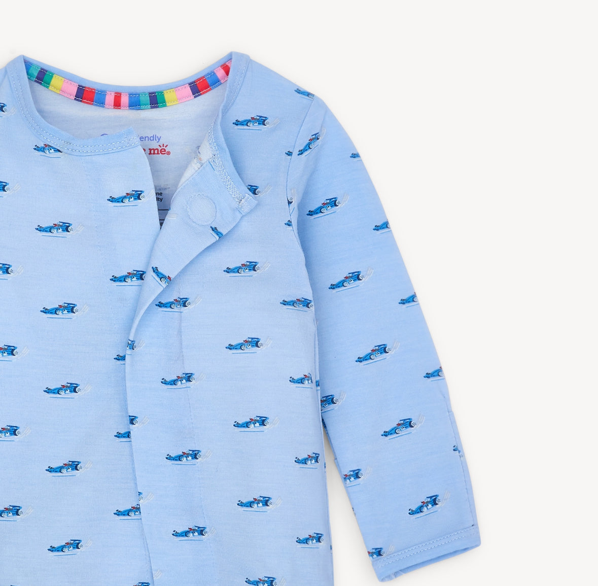 A soft, stylish all-day and all-night wardrobe staple with smart magnetic fasteners that makes changing time painless. With our no over-the-head design, simply open the outfit, insert baby, and BOOM, DONE! - the footie practically closes itself. Machine wash as directed.