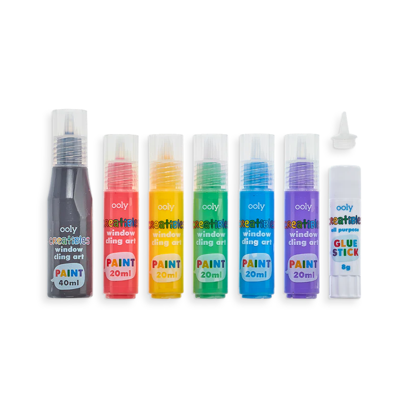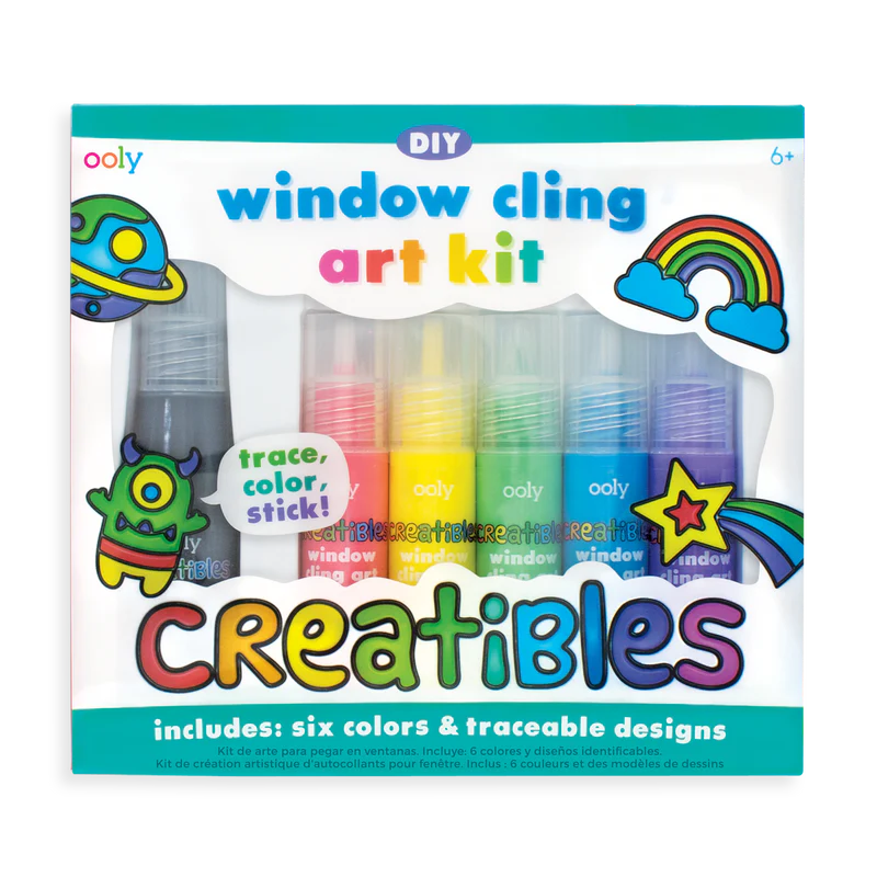 Run out of wall space? Add some happy color to your windows with the Creatibles Window Cling Art Kit and use the light of the sun to brighten up your room and your world. With five colors and 14 designs to choose from, the sky is no longer the limit because the sky is now your canvas!