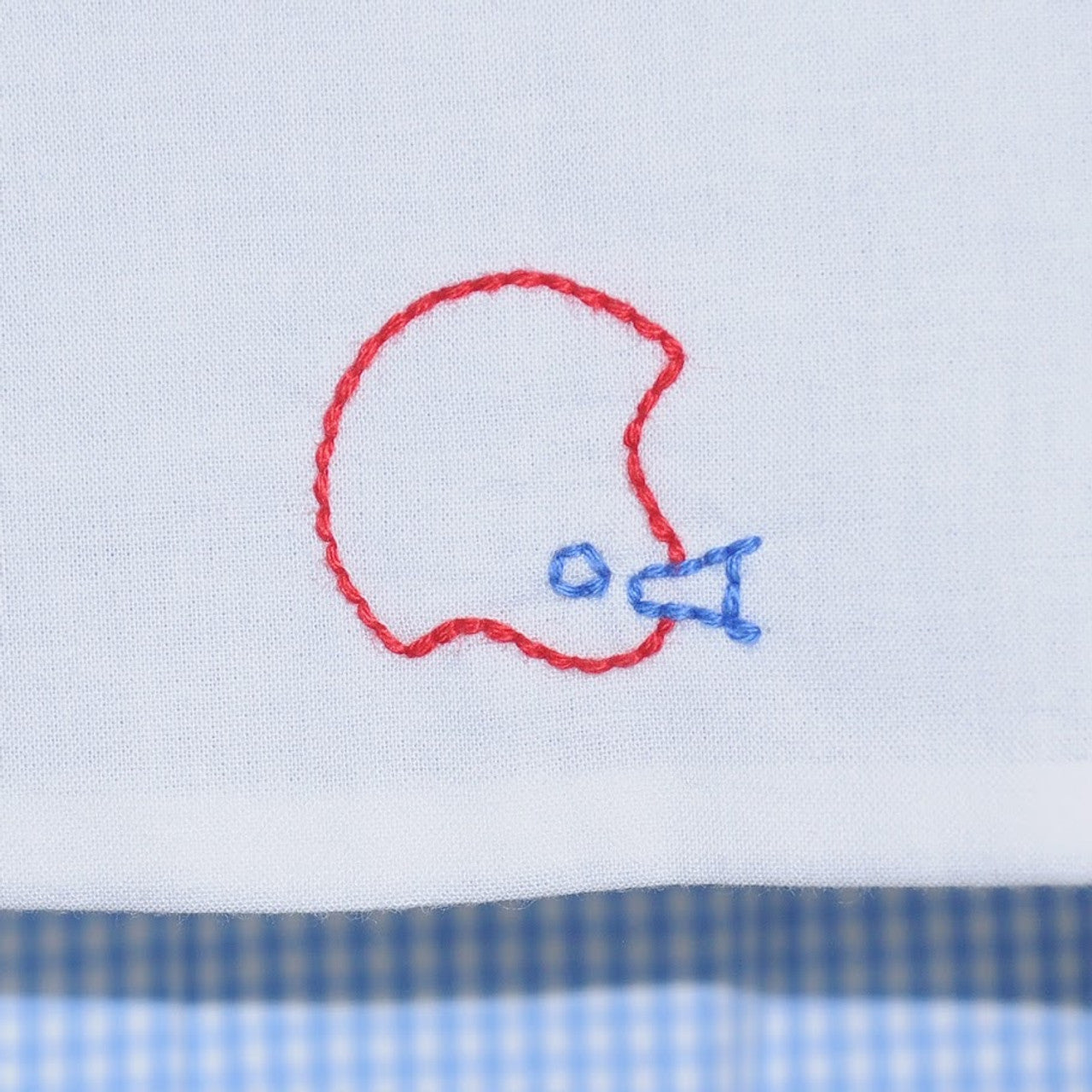 Get ready to cheer on your team in this adorable diaper set! The hand-stitched trio of helmets makes this the perfect game day outfit!