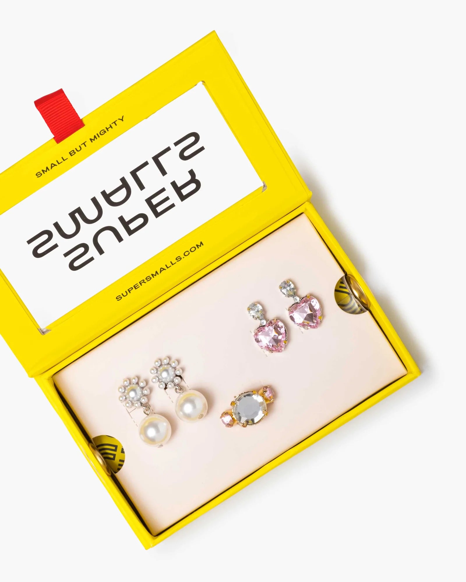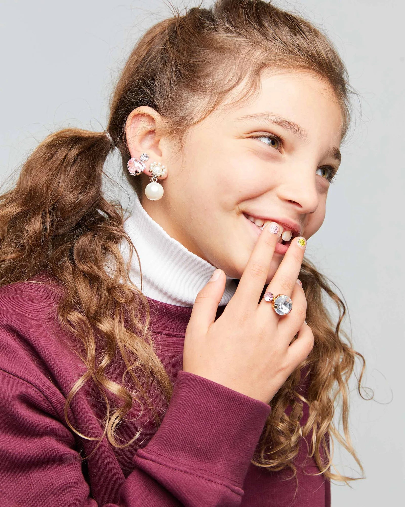 Break out the cucumber tea sandwiches, we’re taking these jewels for a spin at the garden party! Pink hearts, “diamonds,” and “pearls”, give this set a super ladylike feel. Two pairs of clip-on earrings and an extra sparkly ring make for the perfect finishing touch to your floral prints or fairy wings. Inspired by Mom’s jewelry drawer, these gems serve up big-kid-elegance with a fresh side of fun.