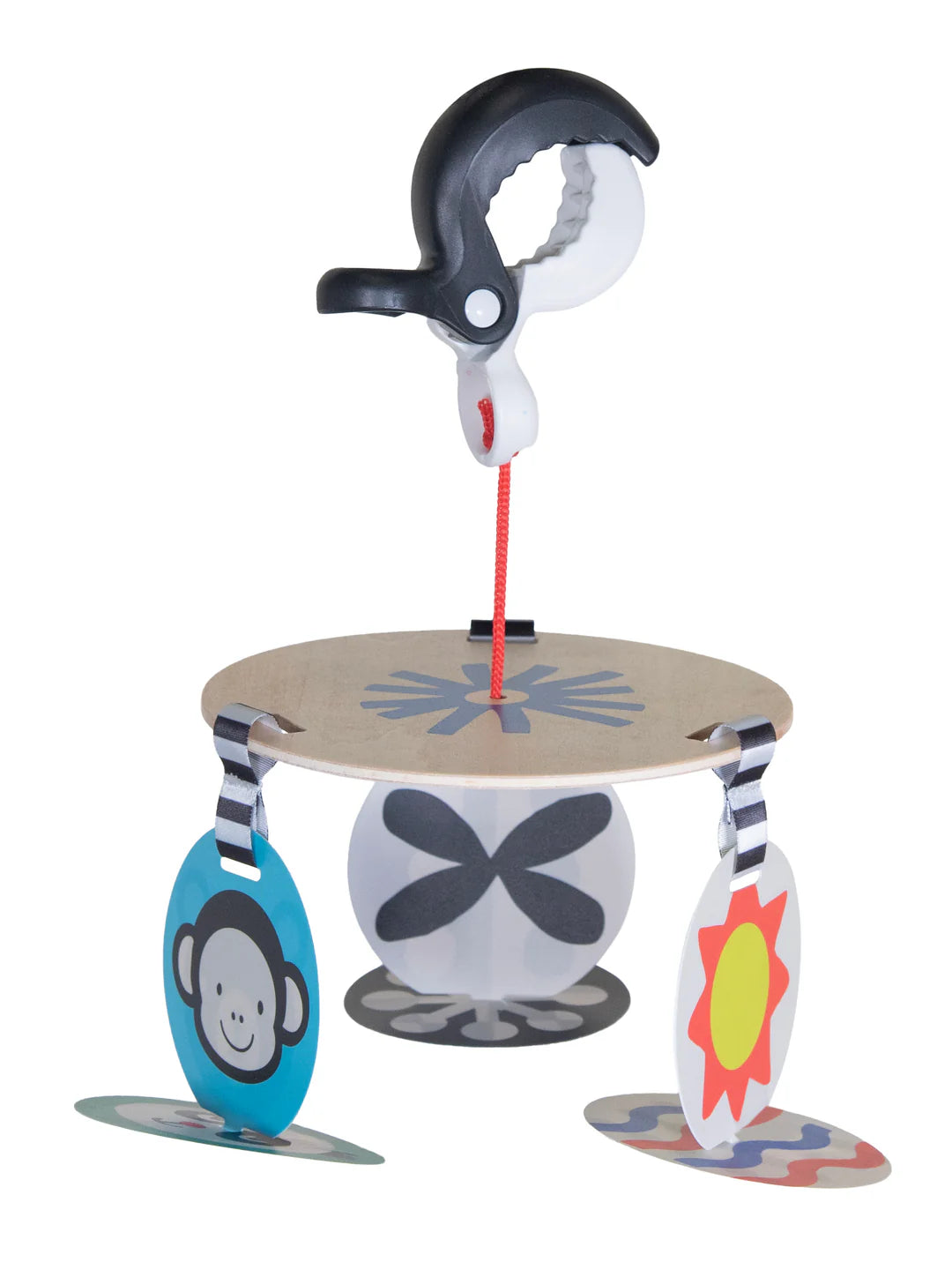 Clip-n-go fun for the stroller, carrier, or above the diaper changing station. High-contrast graphics captivate baby and support visual development!