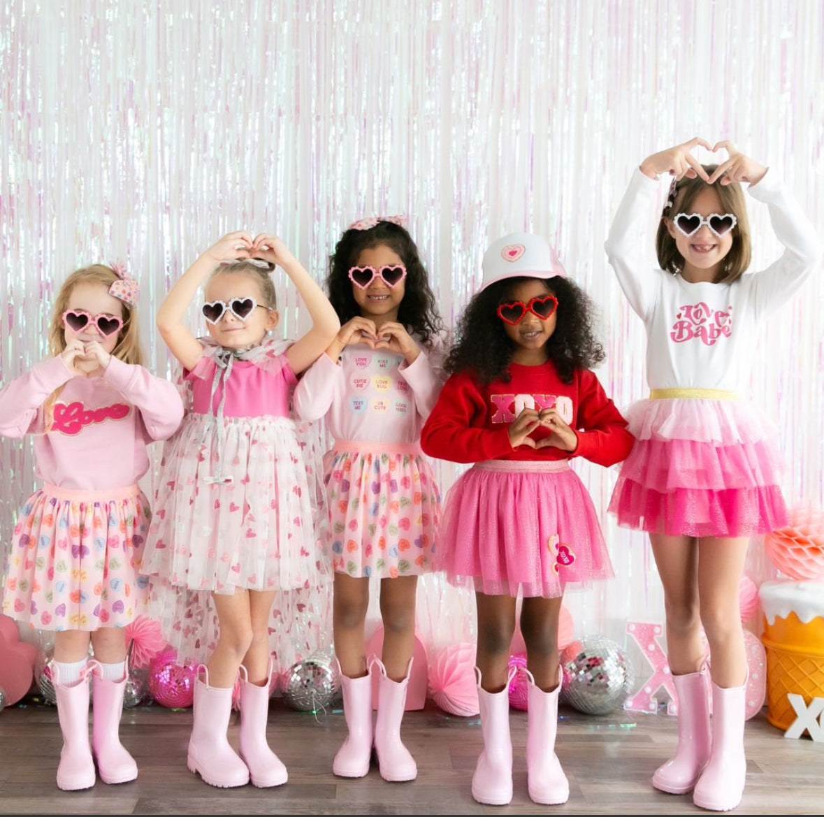 The Heart Patch Valentine's Day Tutu is a fun skirt and dress up tutu for celebrating Valentine's Day! Features: * Raspberry tulle with gold glitter accents and heart patches * Raspberry cotton lining * Pink glitter elastic waistband * Care: Hand wash and line dry