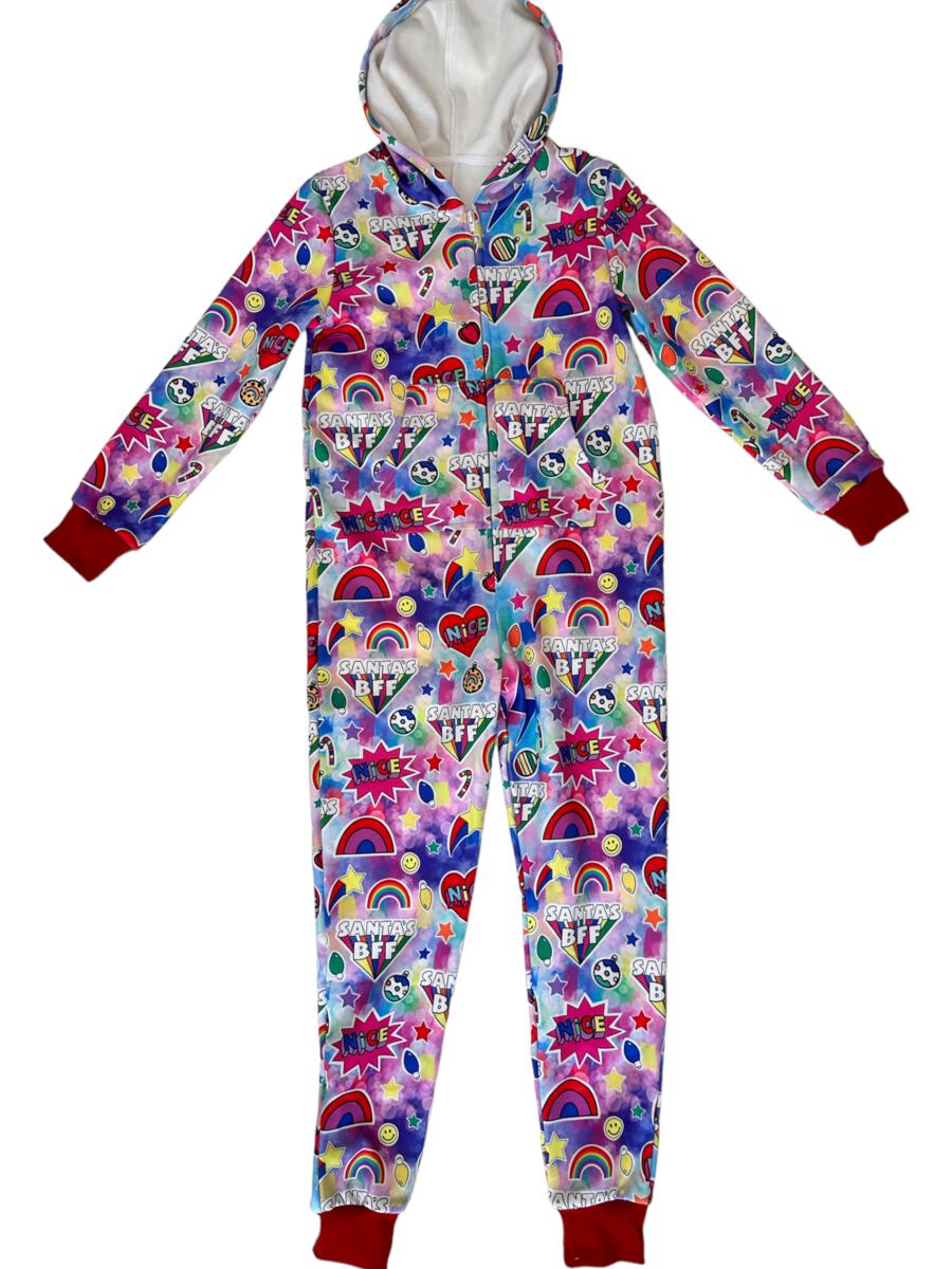 This onesie is perfect for adding a fun and cheerful touch to your holiday wardrobe, showcasing colorful designs of rainbows, stars, and festive icons.