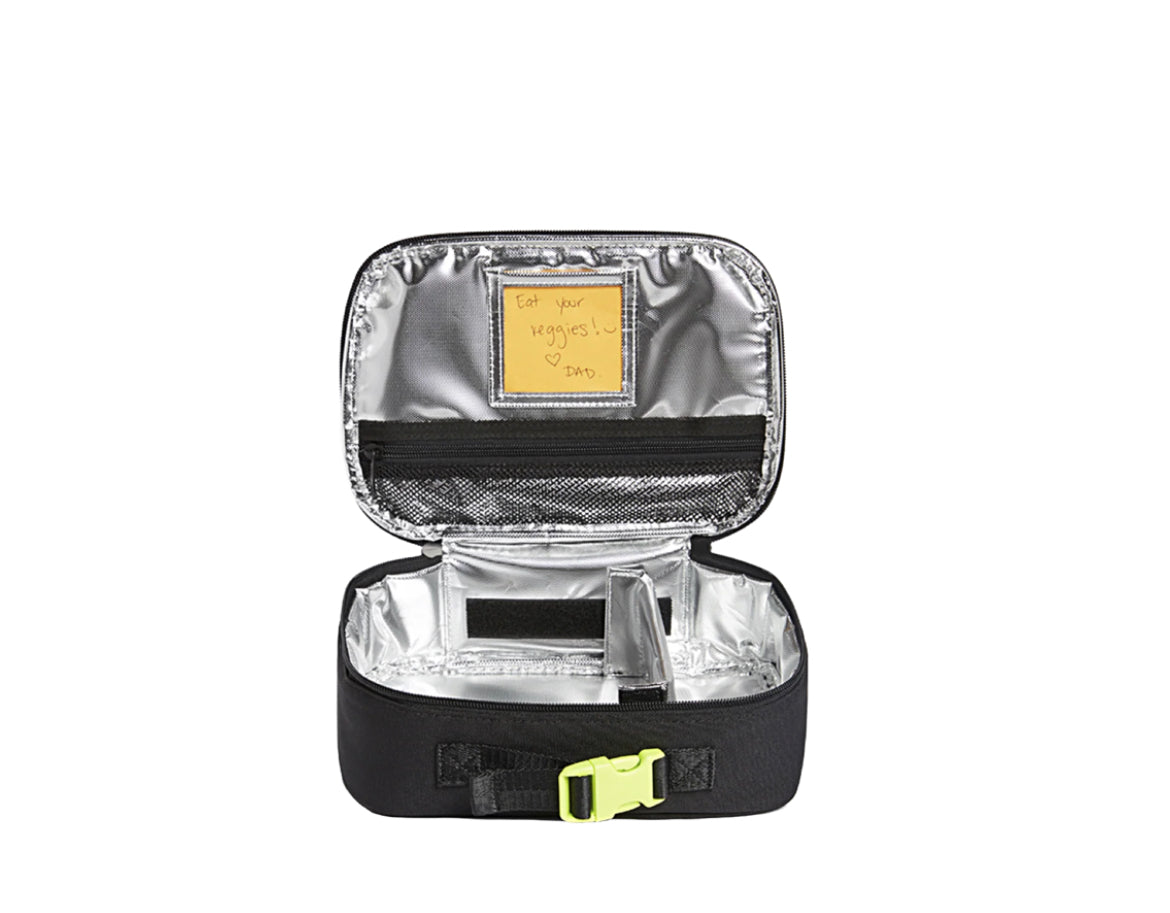 A full lunch for a young student i.e., a standard size water bottle, a sandwich, a granola bar, and a banana