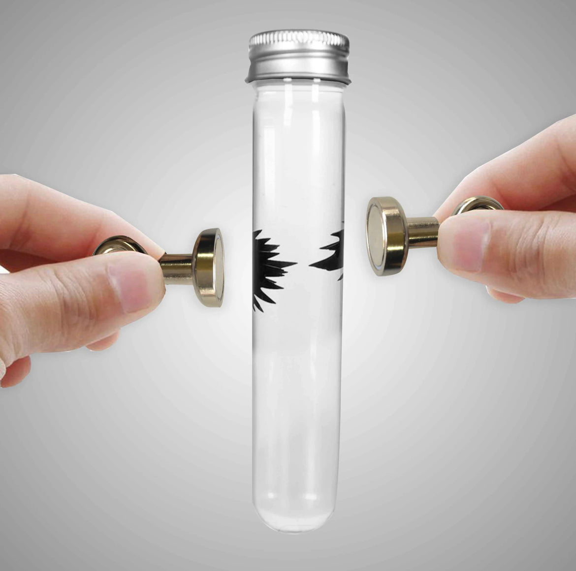 Each test tube contains a bag of special magnetic powder and a strong magnet, so when you suspend the powder in a liquid, you can place the magnet near the tube and watch amazing
