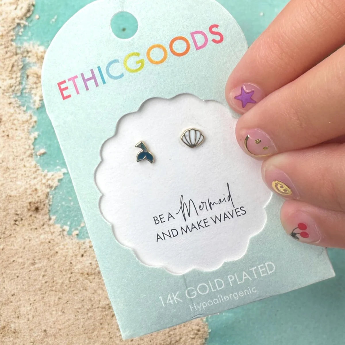 Let the ocean whisper a dash of magic with these playful Tiny Stud Earrings, a complementary set featuring a mermaid tail and shell design. These 4-5mm micro stud earrings are crafted with sensitive ears in mind, using hypoallergenic 14K gold plated stainless steel. The screw-on, flower design flat back guarantees a secure fit for your little mermaid! Be a Mermaid & Makes Waves! Perfect for kids of all ages, including kids at heart!