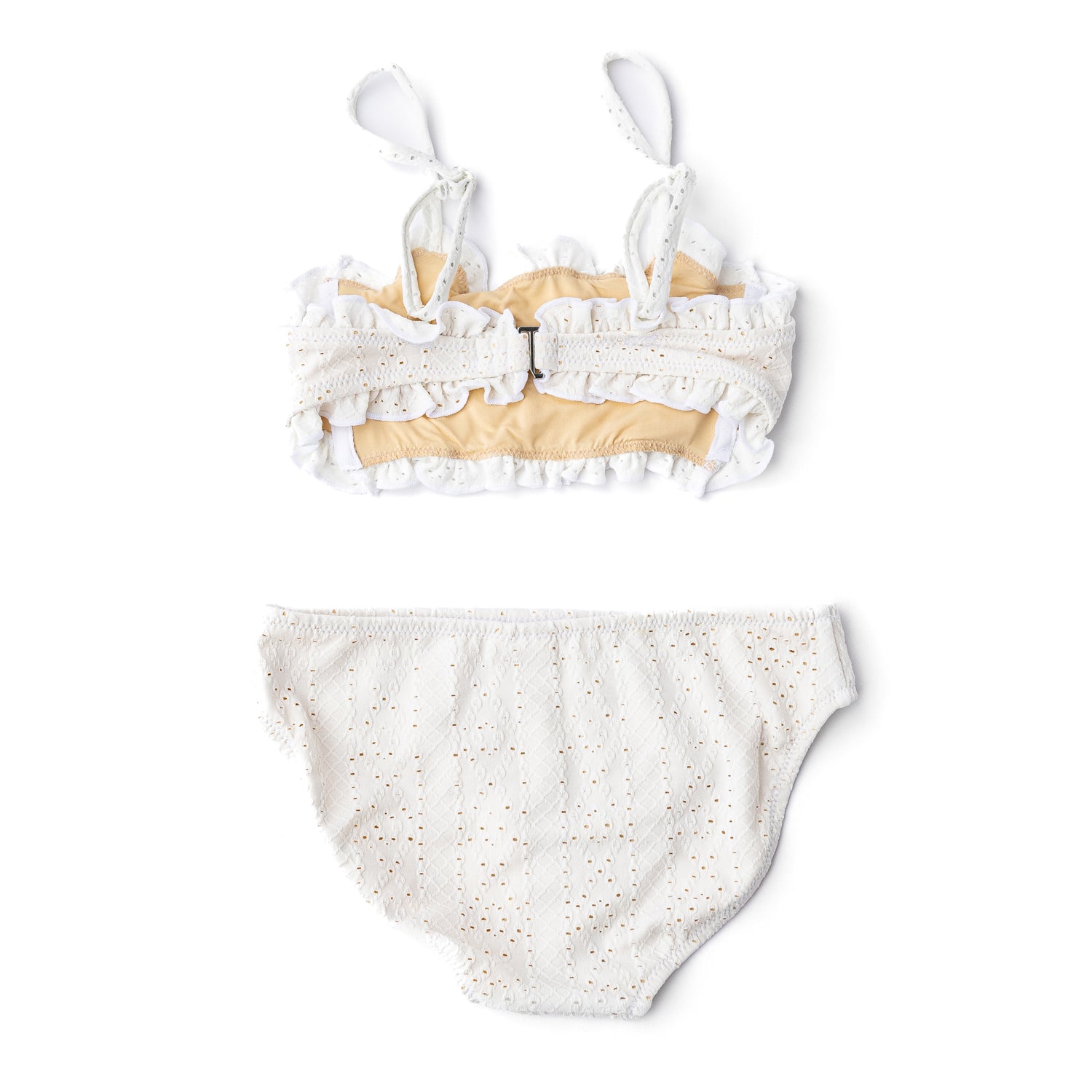 The White Eyelet Girls Smocked Two Piece Swimsuit blends classic elegance with modern swimwear design. Featuring beautiful, smocked detailing and delicate eyelet accents, this swimsuit brings a touch of vintage charm to any sunny day at the beach or pool. The adjustable straps ensure the perfect fit, while the full cut coverage offers confidence and comfort for all-day wear.
