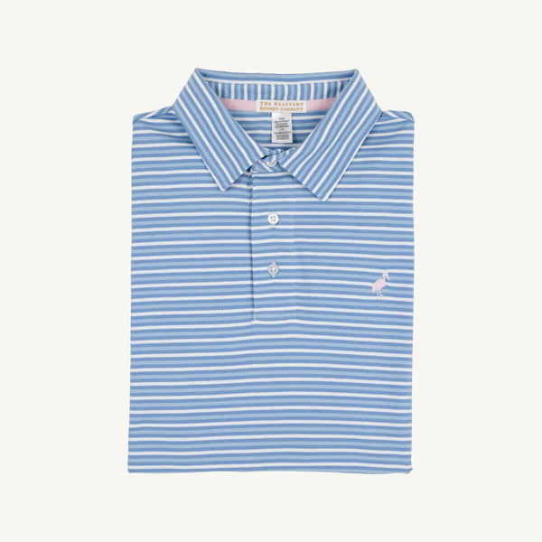 Dress your little gentleman in the Prim & Proper Polo & Onesie featuring Sumner County Stripe in Sunrise Blvd. Blue with our sweet Palm Beach Pink Stork for an outfit that is as charming as he is! This top is the elevated basic polo that that keeps him looking dapper and feeling comfortable all day long. Perfect for egg hunts, family photos, and creating those precious memories you'll treasure forever! Pair it with the Croquet Party Polo in Sumner County Stripe for a father and son matching moment!