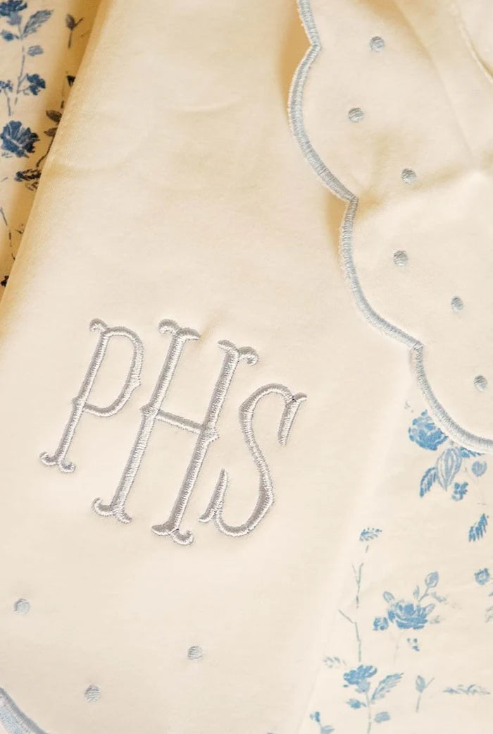 The Proper Peony Bib and Burp Set in Scalloped Dot is made of 100% cotton, double layered, with timeless hand-sewn embroidery. Bib and Burp is packaged with a satin bow and ready for gifting!