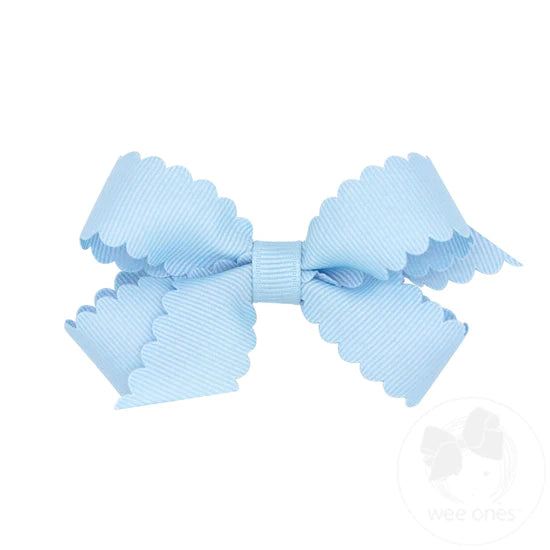 This mini grosgrain hair bow with scalloped edges is perfect for girls of all ages. This bow is sure to stay in her hair all day with our patented WeeStay™ no-slip hair clip.