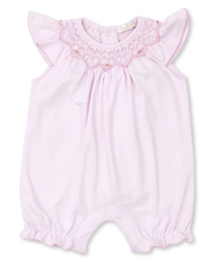 - The cozy, pink playsuit is crafted from the finest Pima cotton, with delicate hand detailing and timeless design.