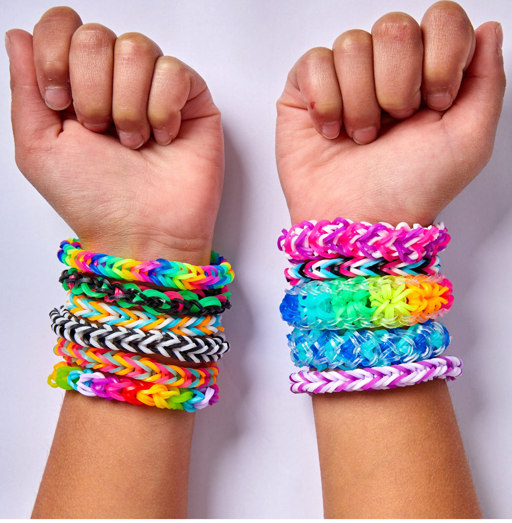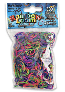 600 pack of bands for rainbow loom in a rainbow tie-dye color.